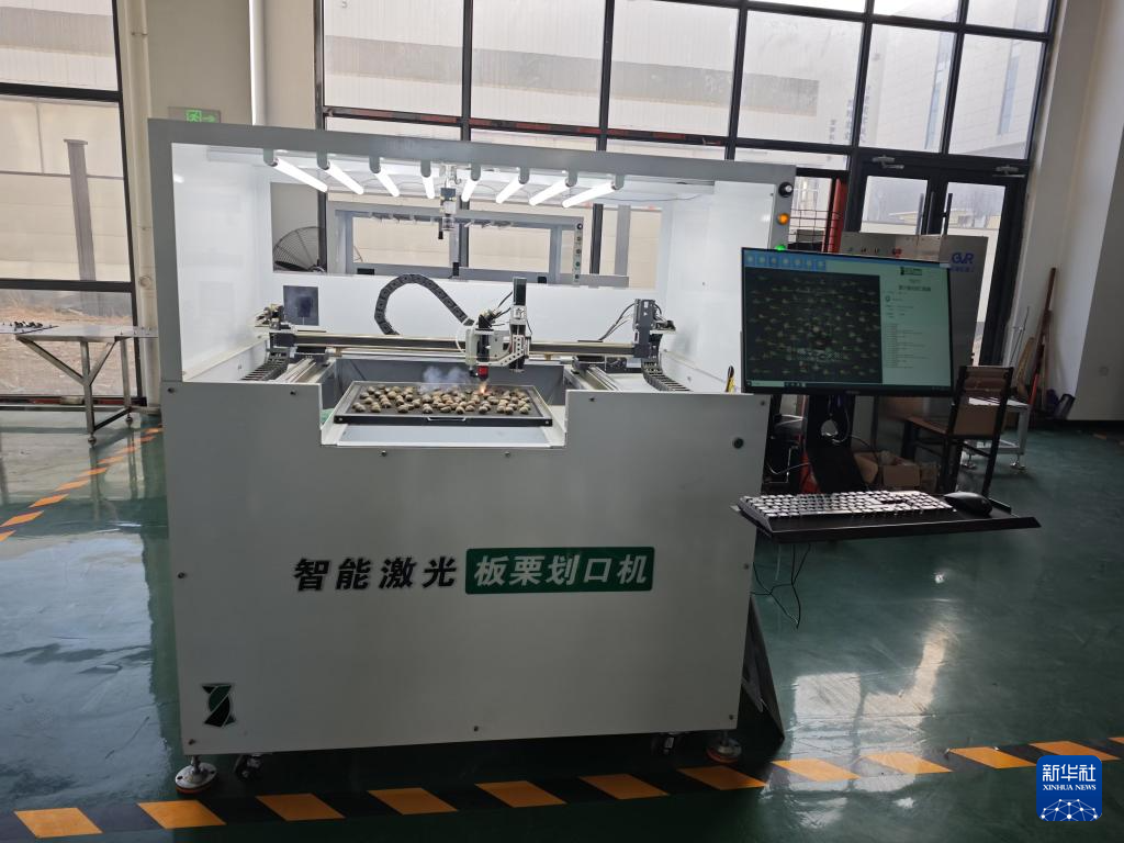 手艺人员为记者现场演示了另一款智能机械人是若何工做的。点击一下这台智能激光板栗划口机的屏幕,机械臂就起头工做。只见烟气升起,板栗皮上留下一道黑色“划痕”。